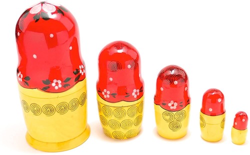 ロシアのお土産の定番、セミョーノフ産マトリョーシカ5個組。